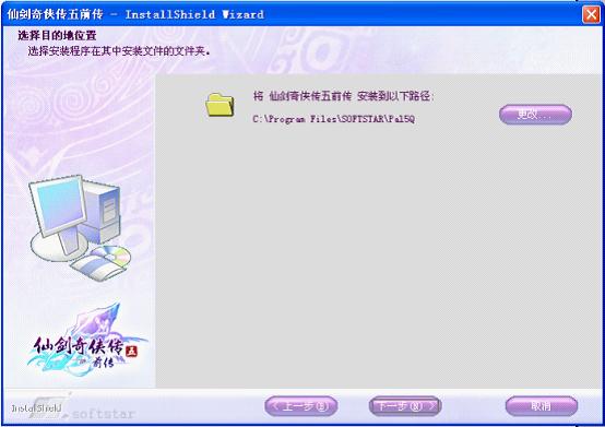 在此页面选择《仙剑奇侠传五前传》客户端在您电脑硬盘上的存放区域,确保您选择的硬盘空间足够,选择好后,点击"下一步"按钮